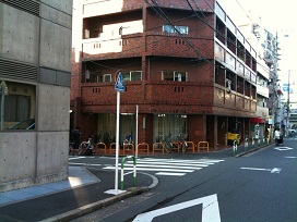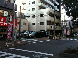 ③ 突きあたりを右に曲がり、1本目の角を左に曲がります。