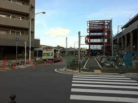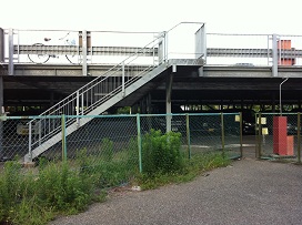 ③ 突当りの歩行者用出入口を入って、すぐ左の階段を上がります。