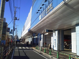 ③ マツモトキヨシ、ガストのあるマリン通りを南下します。バス停富浜二丁目、アイリス歯科の先にある駐車場となります。