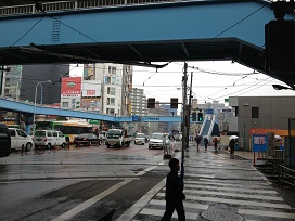 ① 中央口を右へ進み(都電荒川線の駅方面)、交番の方向へ直進します。