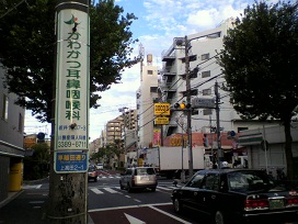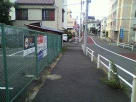 ③ 左側に駐車場がございますが、出入口はさらに左折したところにございます。