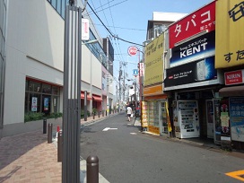 ① 「東口」を出て左へ駅ビルに沿って進む。