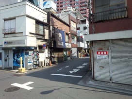 ② 「みやこ屋商店」の先を右に曲がる。