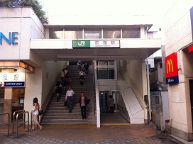 ① 「西口」改札を出る。