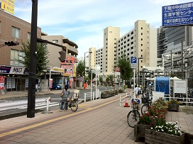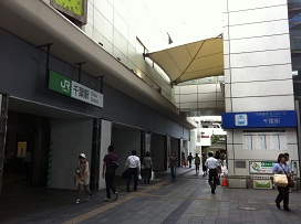 ① 「東口」を出て、左「千葉公園・弁天方面」へ進み、「池尻地下道」を通り抜けた右側の階段を上がります。