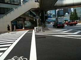 ② 2つ目信号、「銀座東七丁目交差点」を渡ります。