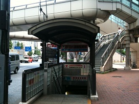 ③ 渡ってすぐ右側にある「東銀座駐車場A階段入口」より駐車場へ入ります。