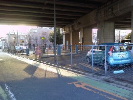③ 高架下の右側に駐車場がございます。