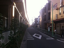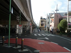 ① 線路高架沿いに千歳船橋方面へ行く。(北口・南口どちらからも行けます)