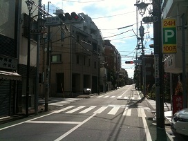 ③ 2本目の路地の一方通行を右折します。