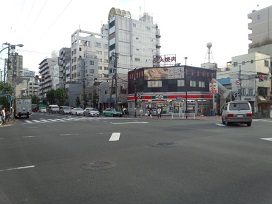 ② 約300m先、「森下5丁目」交差点(墨田工業高校)を右に曲がり「高橋夜店通り」