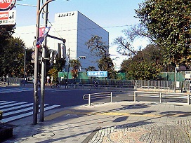 ① 「北口」を出て「電通大通り」を甲州街道方向へ進み、突き当たりの「調布駅入口」交差点を右へ曲がる。