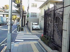 ② 甲州街道の下り車線を新宿方面へ約150m弱進んだ、歩道橋の手前のT字路を右へ曲がる。