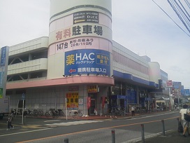 ③ 右側の商業施設3階に駐車場がございます。(1階はドラッグストアが入居)