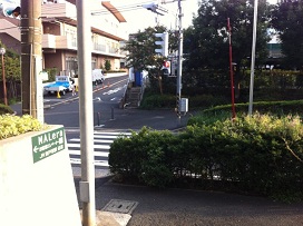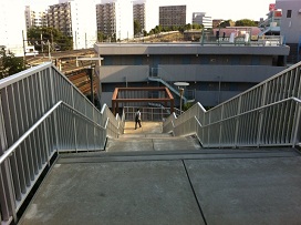 ③ 横断歩道を渡り、正面の階段を上ります。