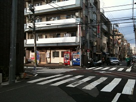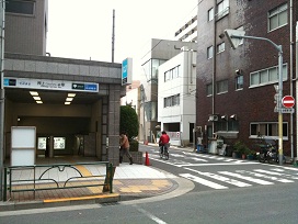 ① 「B2」出口を出て左後方へ進みます(大通りへは出ません)。