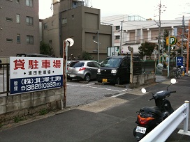 ③ 3つ目の角手前、左側に駐車場がございます。
