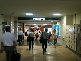 ① 「地下中央口」を出て、真っすぐ約100m進むと八重洲地下街へでます。