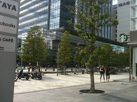 ② M.M.MID SQUAREの前を通過し、右手に見えるTSUTAYA・スターバックス正面の商業施設「M/M GRAND CENTRAL TERRACE」に入る。