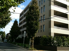 ③ 大きなマンション「ピアース尾山台」を過ぎ、右に曲がると左側に駐車場がございます。