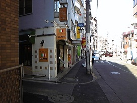② 道なりに進み、イタリアンダイニング(GRATO)の手前の路地を左に曲がります。