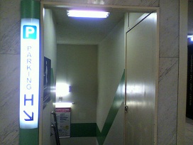 ② サブナード地下駐車場「通用口F」の階段を下ります。