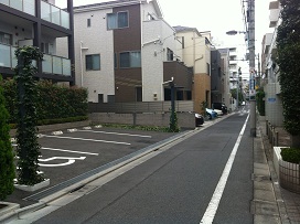 ③ 「明化小学校」交差点から4つ目の路地交差点の先「エスティンメゾン千石マンション駐車場」となります。途中右手側に「千石郵便局」に「教会」が目印。 |