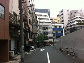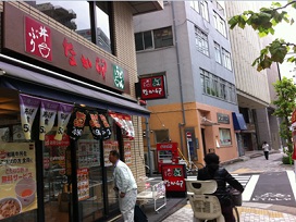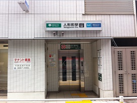 ① 「A6」のエレベーターを降りて人形町交差点(浜町河岸通)より小舟町交差点方向に進む。