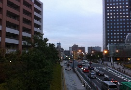 ① 「西口」ラゾーナ横よりソリッドスクエア方向へ進みます。