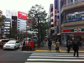 ② 西友手前の横断歩道を右に曲がります。