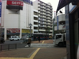① 「東口」を出て西友の手前まで直進してください。
