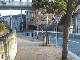 ③ 坂を下り右前のレンガ造りのマンション下の駐車場となります。