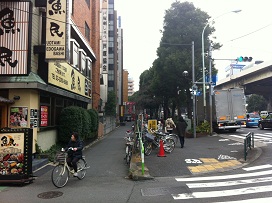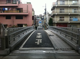 ① 「江戸川橋駅」3番出口を出ます。「目白通り」を横断し、首都高速の高架沿いを左側に進みます。
