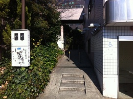 ③ JR横須賀線の高架をくぐり、1つ目の横断歩道左手のマンション駐車場となります。