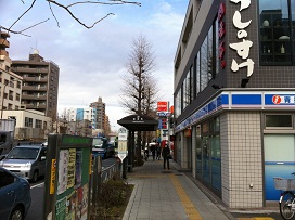② 「ローソン」から中山道に沿って志村坂下方面に「歩道橋」の先まで進む。