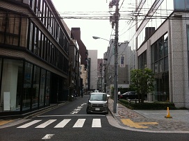 ③ 2つ目の交差点から約50m先右側に「クロスオフィス内幸町」エントランス横に駐車場となります。