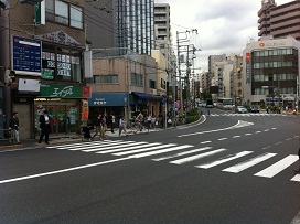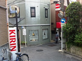 ① 「2番」出口より春日通りを横断し「不動産エイブル」と「ファッションのタマルヤ」路地に進む。