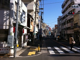 ② 春日通りからすぐの二股路地を右に道なりに「開運坂下」交差点まで進む。