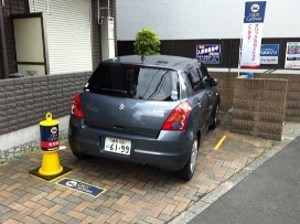 ④ 「開運坂下」交差点から交番を左に見て進み左側に「ドミールT」専用枠の駐車場となります。