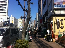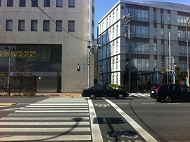 ② 雪谷税務署入り口交差点を渡り、城南信用金庫と税務署の間を80m程度進む。