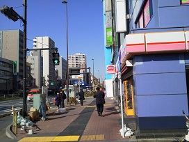 ② 1つ目の角を左折し、国道14号へ出たら右に曲がり100mほど進みます。