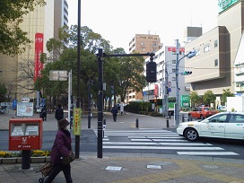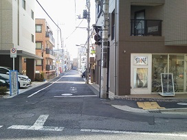 ② 1つ目の角を左へ曲がり、次の角を右へ曲がります。