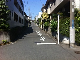 ② 交差点を渡り、道なりに緩やかな坂を下ります。