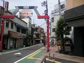 ② 突き当り「稲荷通り」商店街を右に曲がる。