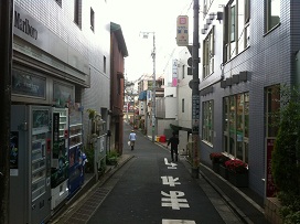 ② 1つ目の路地「たばこ店スギモト」を左に曲がる。