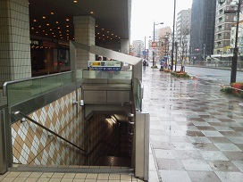① 「2番」出口を出て背中側へ進む(Uターン)