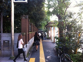 ① 「1番」出口を左側に「本郷弥生」交差点方向に進む。