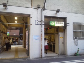 ② 高架脇の道を秋葉原方面(左方向)へ。浅草橋駅西口交差点を渡り、さらに直進します。