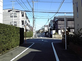 ② 「多摩美大前交差点」を越え、2つ目の横断歩道を右に曲がります。