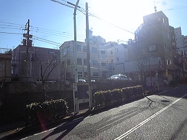 ③ 広尾五丁目交差点(明治通り)をそのまま直進。緩やかな上り坂の途中左側となります。